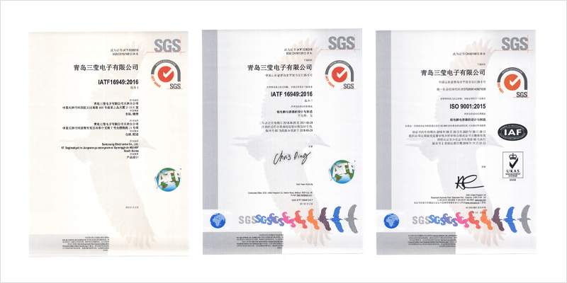 公司先后通過了ISO9001:2015和IATF16949:2016國際質量管理體系認證及ISO14001環境體系管理認證,已經形成從原材料采購、研發設計(韓國三瑩)、生產制造到產品出庫一整套完整的質量管理體系, ‘追求零缺點品質,力爭客戶100%滿意’。公司以質量求生存、以效益求發展、以信譽贏客戶,持續有效運行ISO9001:2015和IATF16949:2016國際質量管理體系,嚴格三級檢查制度,實現全部產品的性能 及外觀100%檢測。自1995年成立以來沒有發生重大品質事件,為客戶提供了健康、安全、綠色的產品。